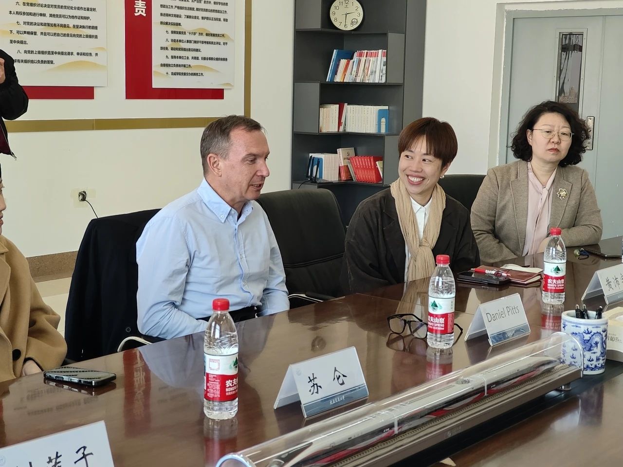 党委书记吴毅、副书记张羽与毕业生家长真诚交流,以详实的数据说明就业现状和学生面临的困局,与家长统一思想,家校合作引导学生破除困局。